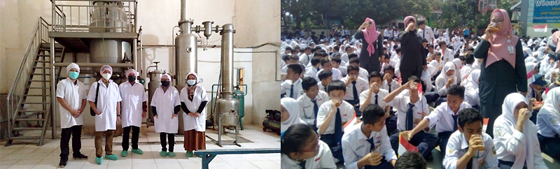 2017年から東ジャワ州ケディリのケルート山の山腹地域で、植物性医薬品の普及に積極的に取り組んでいます。私たちの取り組みは、ケディリのGMP産業とのコネクションづくりに関係していました。ジャムウ業界のPT. Payung Pusaka Mandiriと共同で研究を行い、ジャムウの生産プロセスを強化するために協力しました。地元のハーブ農家を指導し、質の高い原料を正確に選び、同社の研究開発スタッフと協力することで、生産工程全体を改善し、改良点を生産に応用しました。ITSジャムウはこうした協力関係から生まれました。これは、集団の努力から生まれた植物性医薬品のマニフェストです。