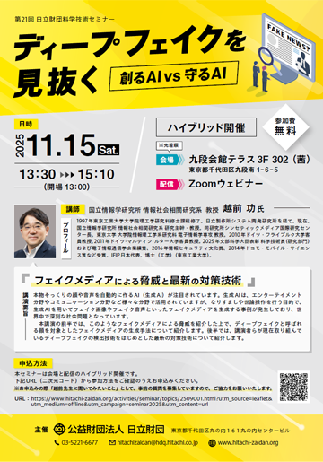 「ディープフェイクを見抜くー創るAI vs 守るAIー」(ハイブリッド開催)